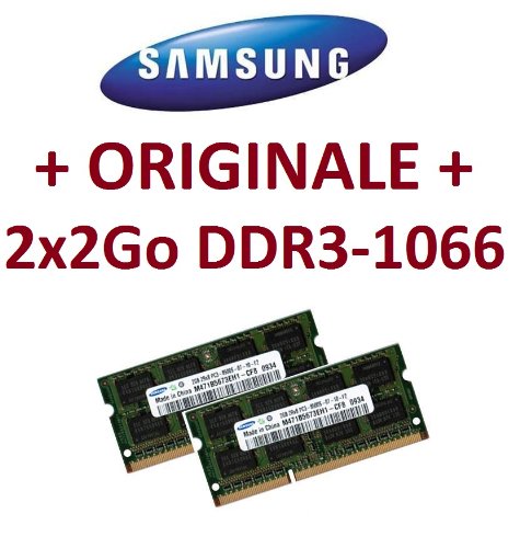 4Go mémoire - Kit double canal SAMSUNG original 2 x 2 Go 204 broches DDR3-1066 PC3-8500 SO-DIMM (2x M471B5673EH1-CF8) mémoire portable ordinateur DDR3 + Apple MacBook + MacBook Pro + iMac + mac mini (2009/2010)
